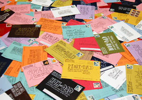 About the Show Carolyn’s parents are the awesomest. Or at least she thinks so...and decided to show them. Starting with their wedding anniversary on July 23, 2009, Sewell hand-drew a postcard for them, and put it in the mail. And then repeated this for the next 365 days. The content of the cards is quite random, ranging from messages of love and adoration, snarky quotes from friends, family and television, and the occasional drawing of a gnome. |
